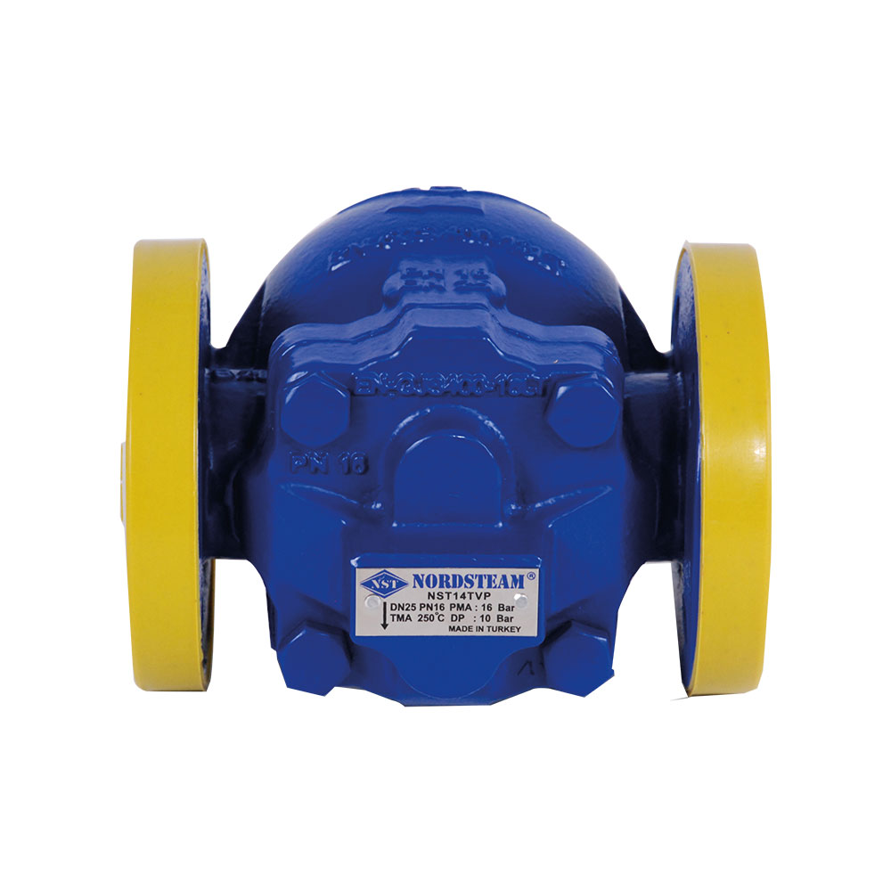 Корпус поплавковых термостатических конденсатоотводчиков тип NST-14TVP изготавливается из чугуна или нержавеющей стали. Все поплавковые конденсатоотводчики оснащены встроенным термостатическим воздухоотводчиком с уравновешенным давлением. Конденсатоотводчик тип NST-14TVP подключается горизонтально или вертикально. Однако положение корпуса конденсатоотводчиков NST-14TVP можно изменить в зависимости от направления потока (например, слева направо, сверху вниз или справа налево).